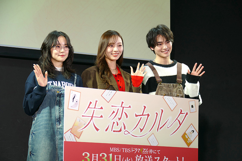 そんな『失恋カルタ』の第1話先行上映&トークイベントが都内会場にて行われ、トリプル主演となる夏野千波役・梅澤美波(乃木坂46)、馬路光役・西垣匠、野田彩世役・加藤小夏が登壇し会場を盛り上げた。梅澤美波、加藤小夏は視聴者へのメッセージとして次のように締めくくった。